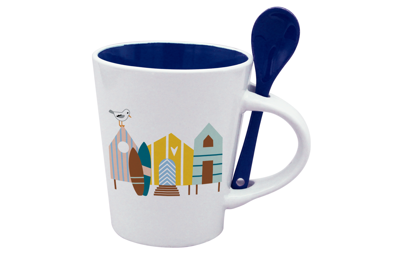 MUG CUILLERE BLANC INT. BLEU-CABINES ET SURF LA PETITE EMI