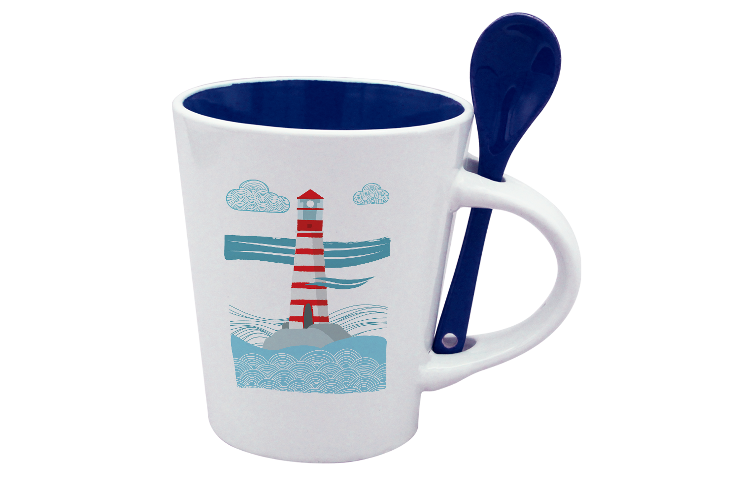 MUG CUILLERE BLANC INT. BLEU-MARINPH