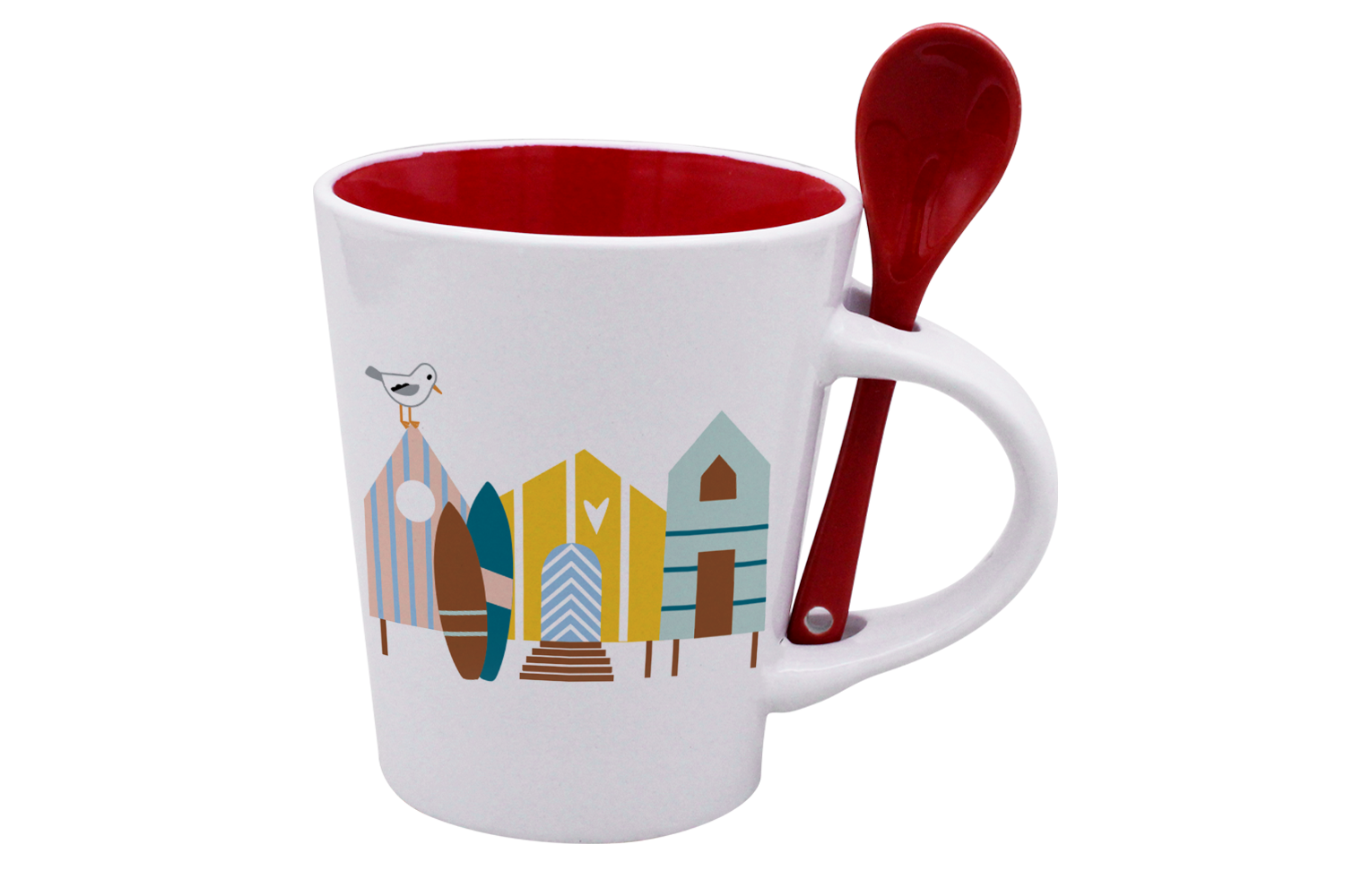 MUG CUILLERE BLANC INT. ROUGE-CABINES ET SURF LA PETITE EMI