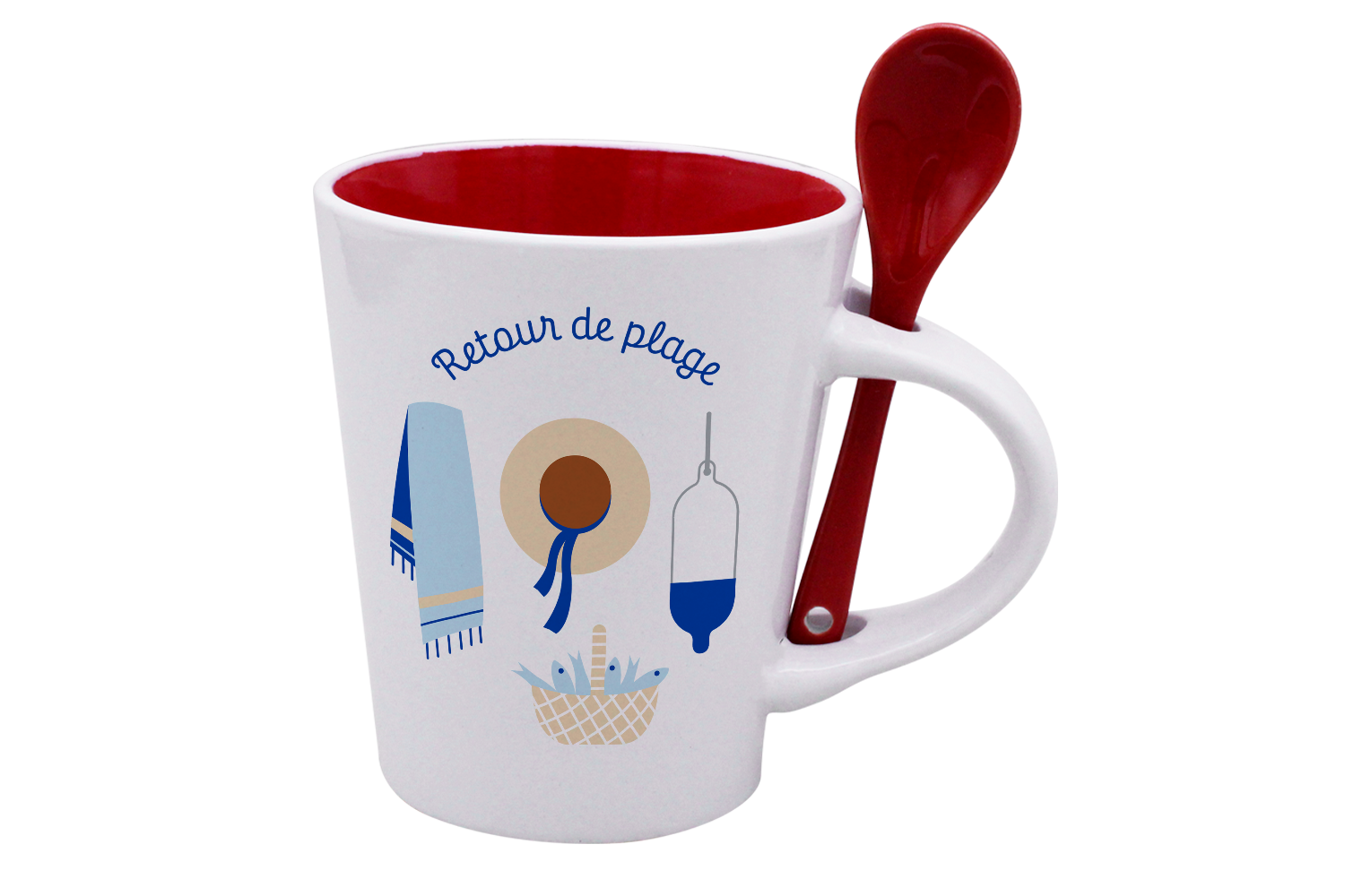 MUG CUILLERE BLANC INT. ROUGE-RETOUR DE PLAGE LA PETITE EMI