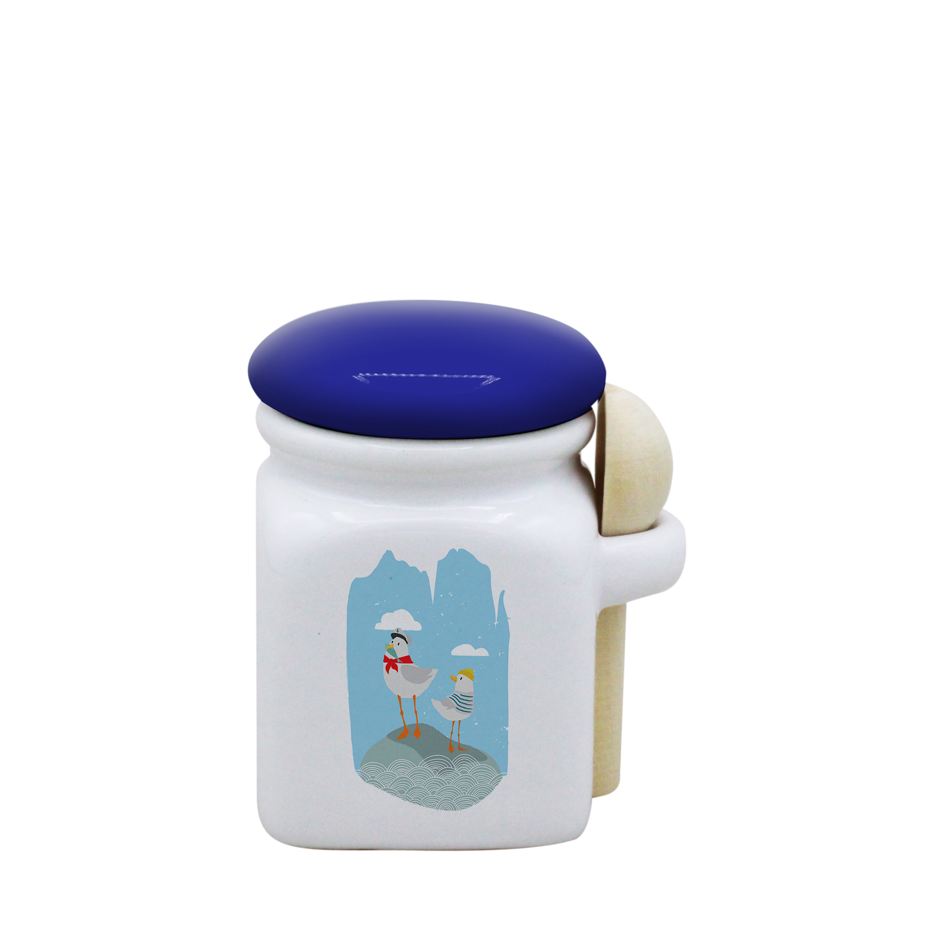 POT BLANC MINI COUV. BLEU+CUIL. BOIS-MARINM