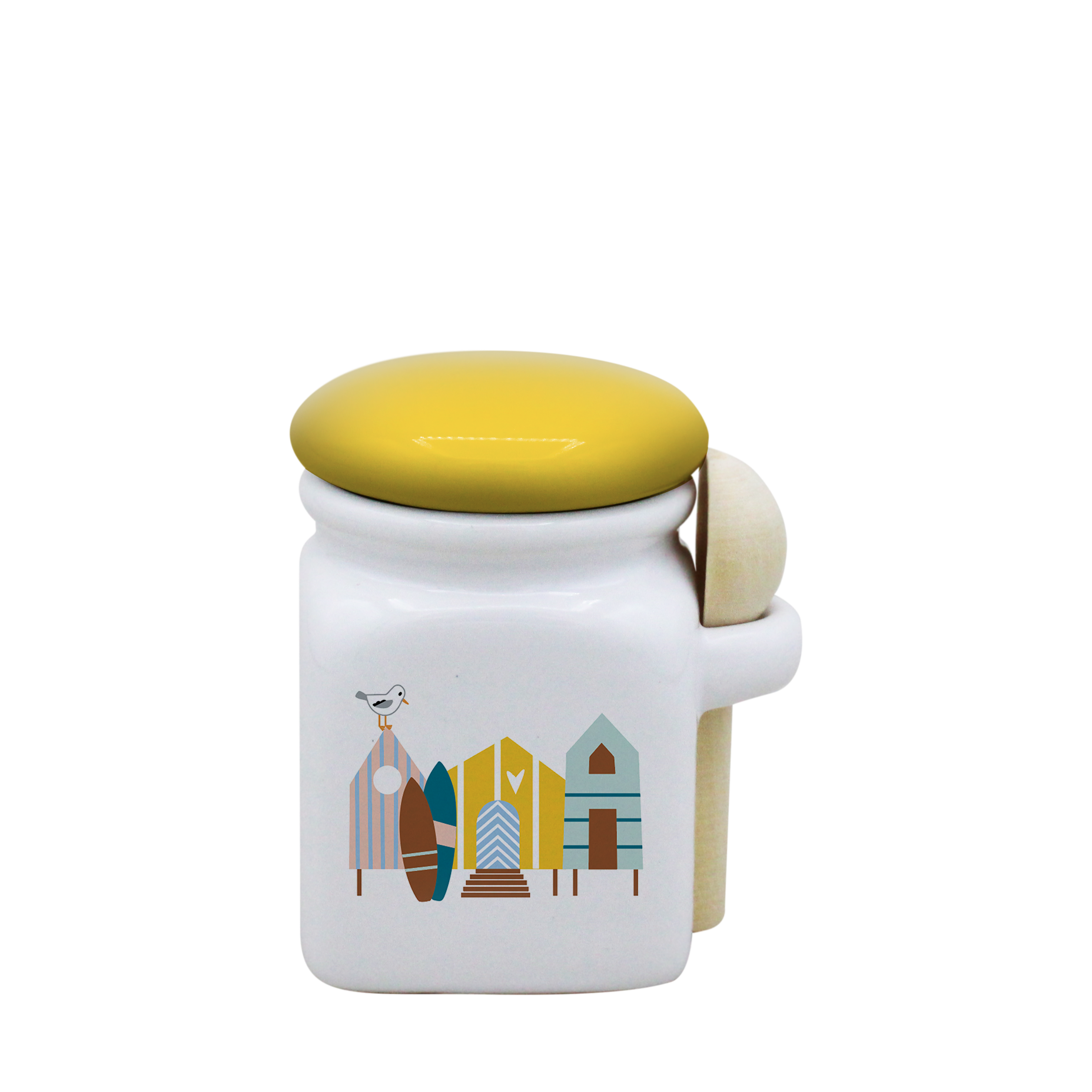 POT BLANC MINI COUV. JAUNE+CUIL. BOIS-CABINES ET SURF LA PETITE EMI