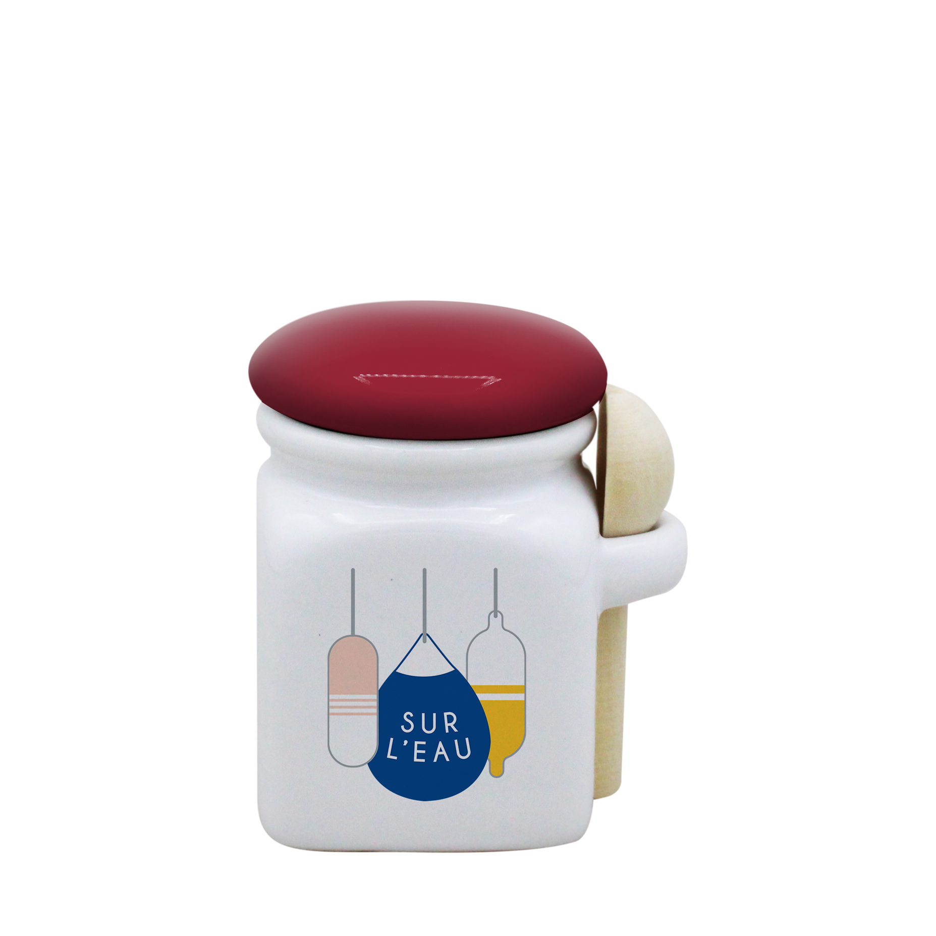 POT BLANC MINI COUV. ROUGE+CUIL. BOIS -BOUEE SUR L'EAU LA PETITE EMI