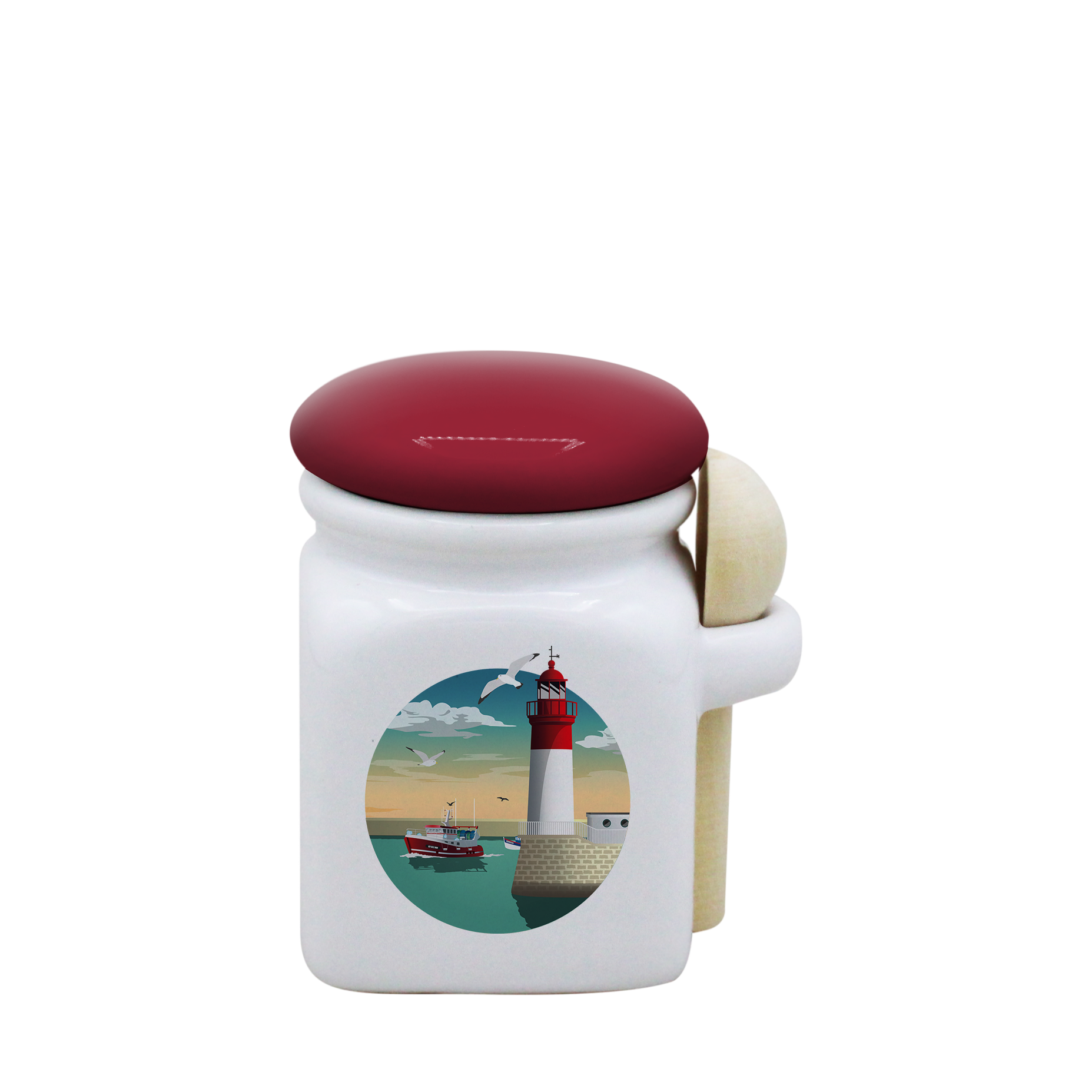 POT BLANC MINI COUV. ROUGE+CUIL. BOIS -PHARECHA