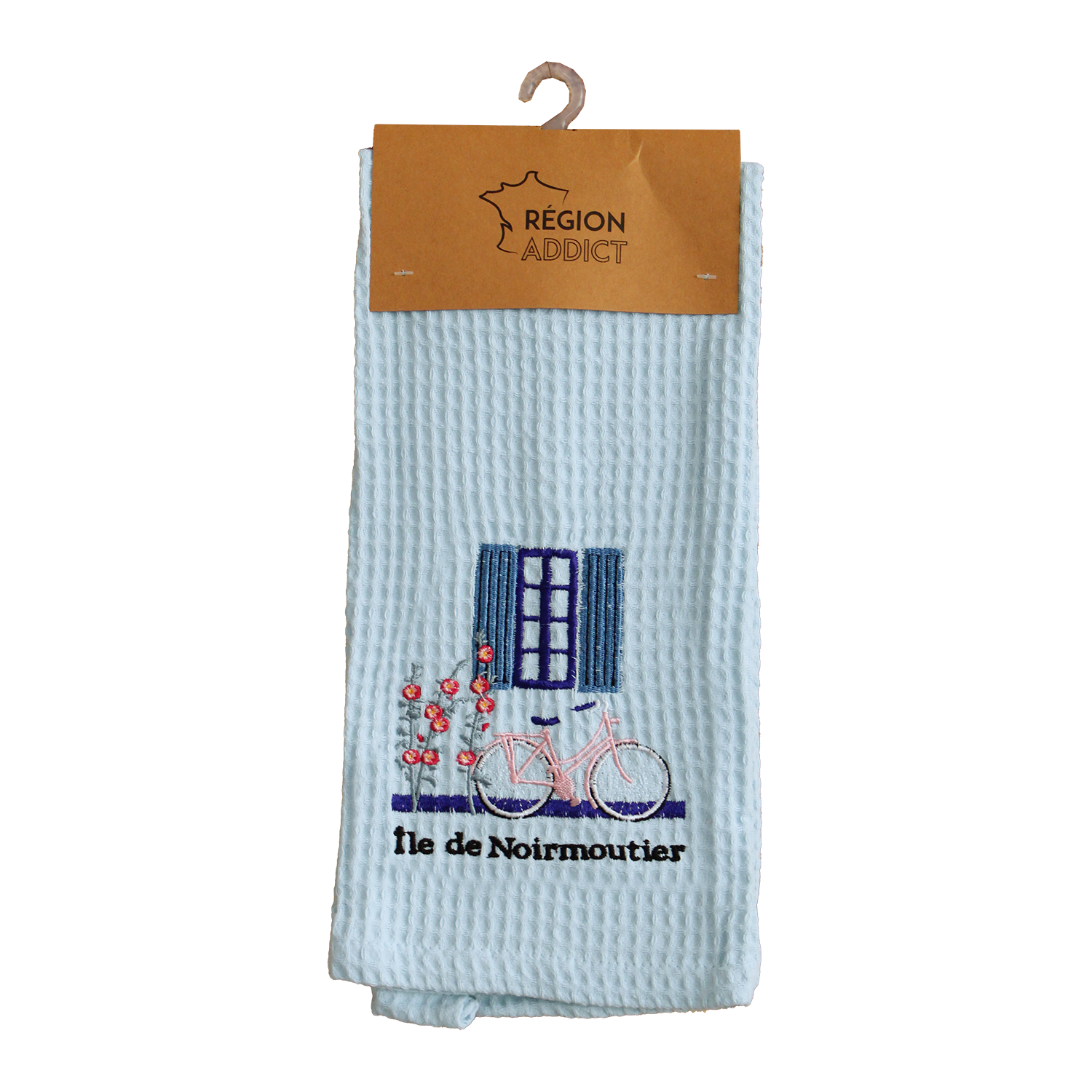 TORCHON NID D'ABEILLE FENETRE NOIRMOUTIER BLEU