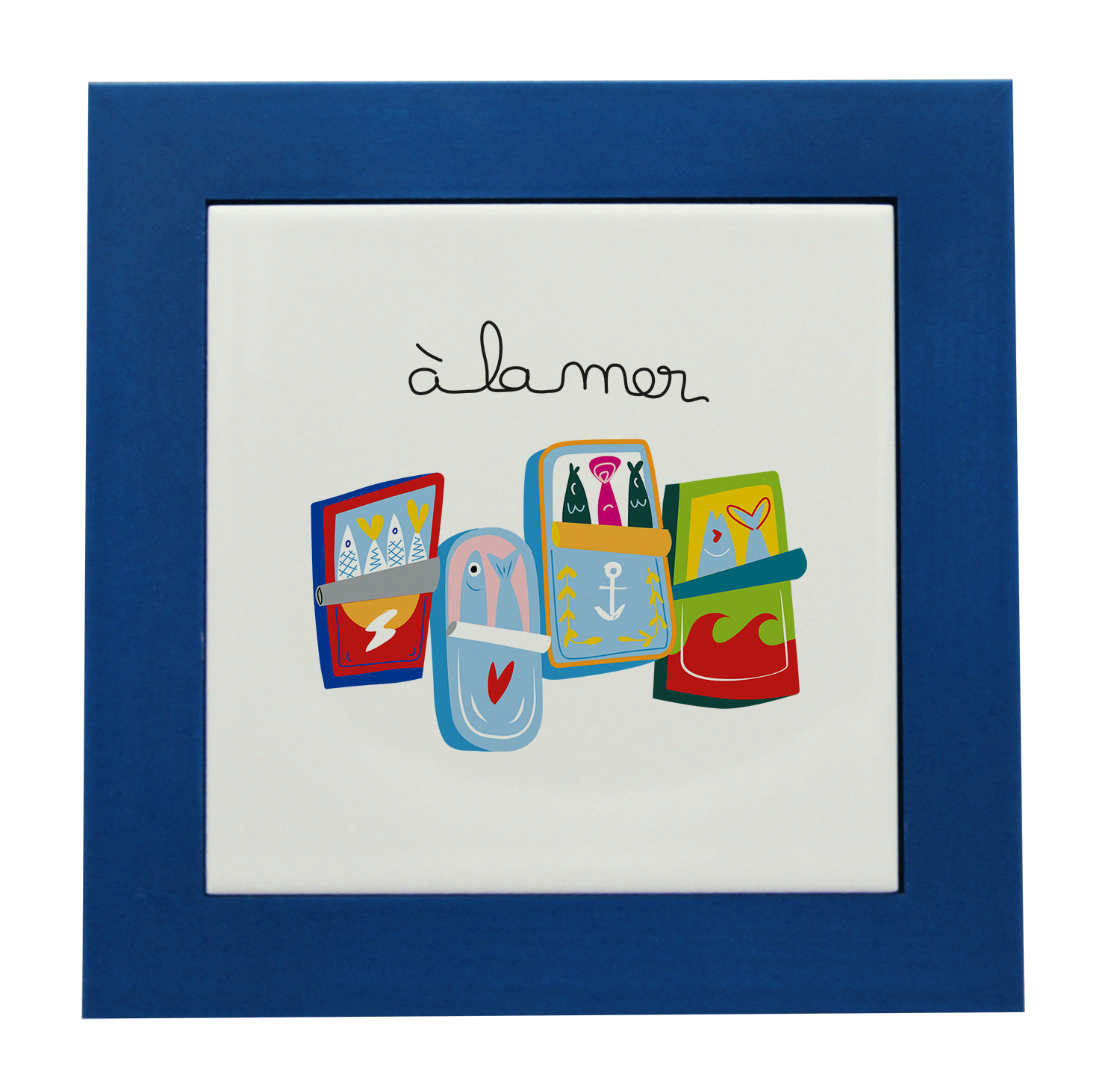 ENTOURAGE BOIS CYAN-CARREAU FAIENCE 15x15 NU-A LA MER SARDINES