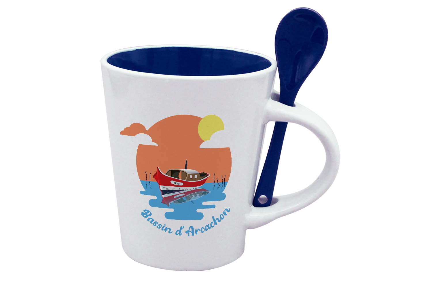 MUG CUILLERE BLANC INT. BLEU-BASSINPI
