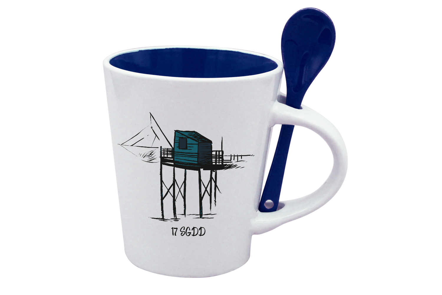 MUG CUILLERE BLANC INT. BLEU-CARBLE17