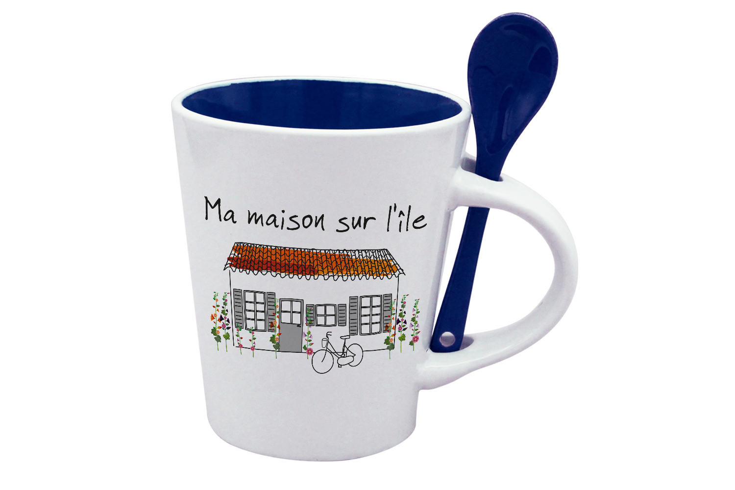 MUG CUILLERE BLANC INT. BLEU-MMASI