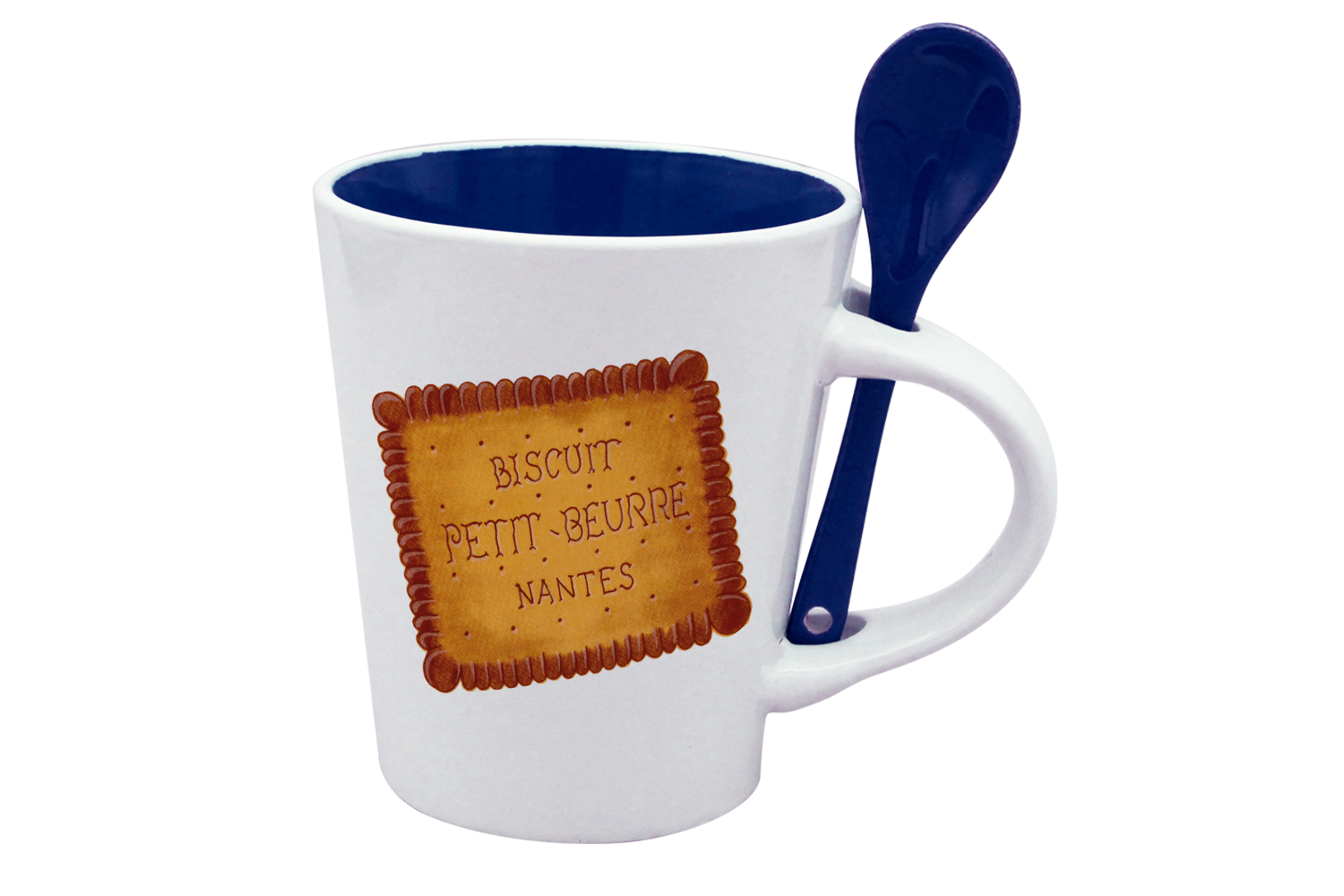 MUG CUILLERE BLANC INT. BLEU-NANTEB