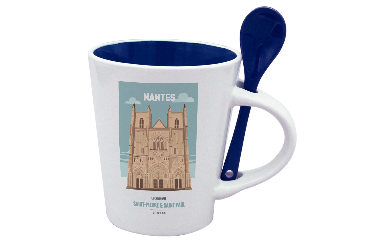 MUG CUILLERE BLANC INT. BLEU-NTECATHE