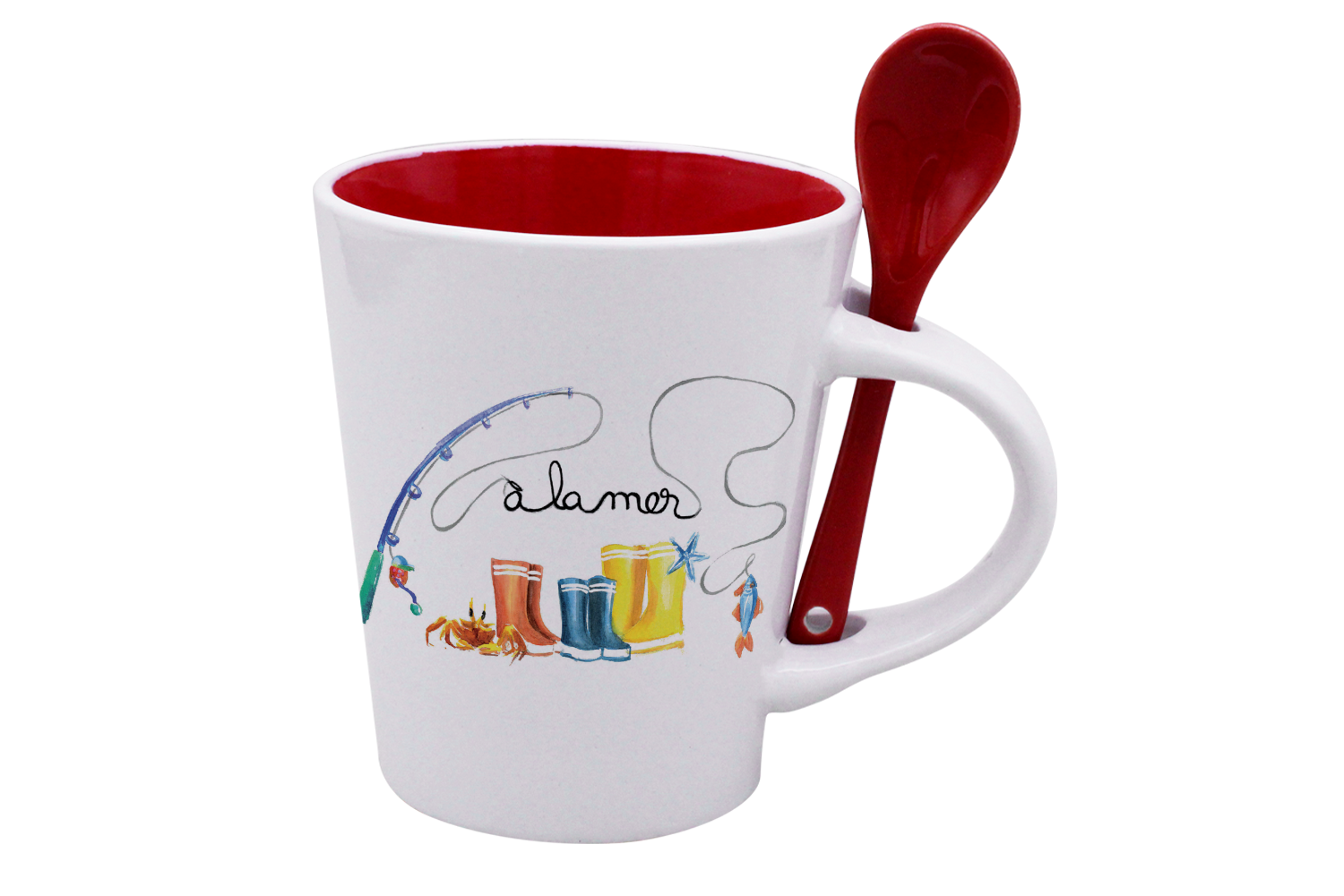 MUG CUILLERE BLANC INT. ROUGE-BOTTE A LA MER