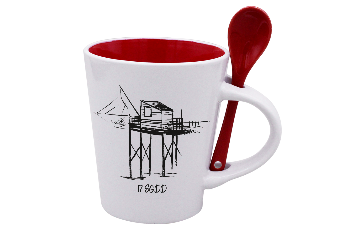 MUG CUILLERE BLANC INT. ROUGE - CARRELET NOIR SPE BO ET BON