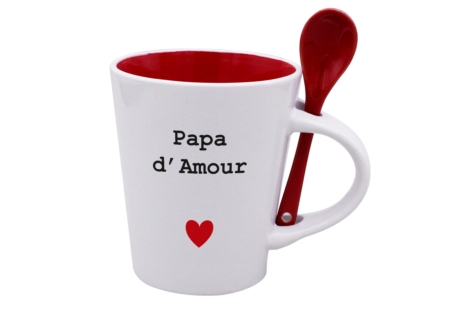 MUG CUILLERE BLANC INT. ROUGE - CŒUR PAPA D'AMOUR