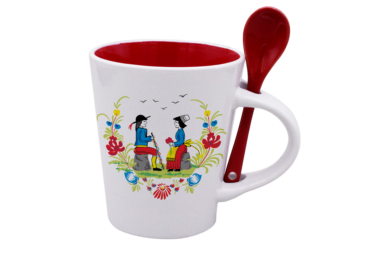 MUG CUILLERE BLANC INT. ROUGE-RETRO