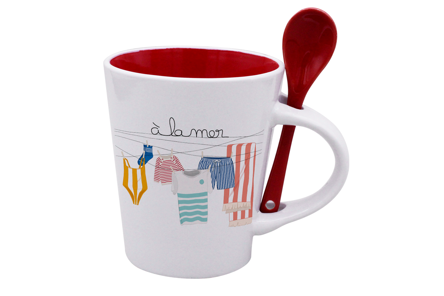 MUG CUILLERE BLANC INT. ROUGE-TRILINGE