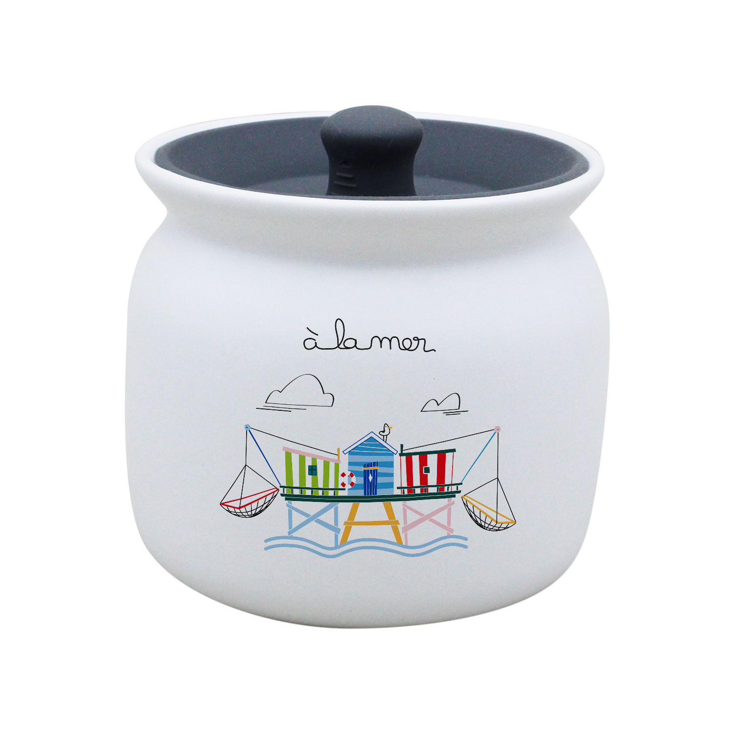 POT BLANC GM COUV. SILICONE GRIS -A LA MER CARRELET