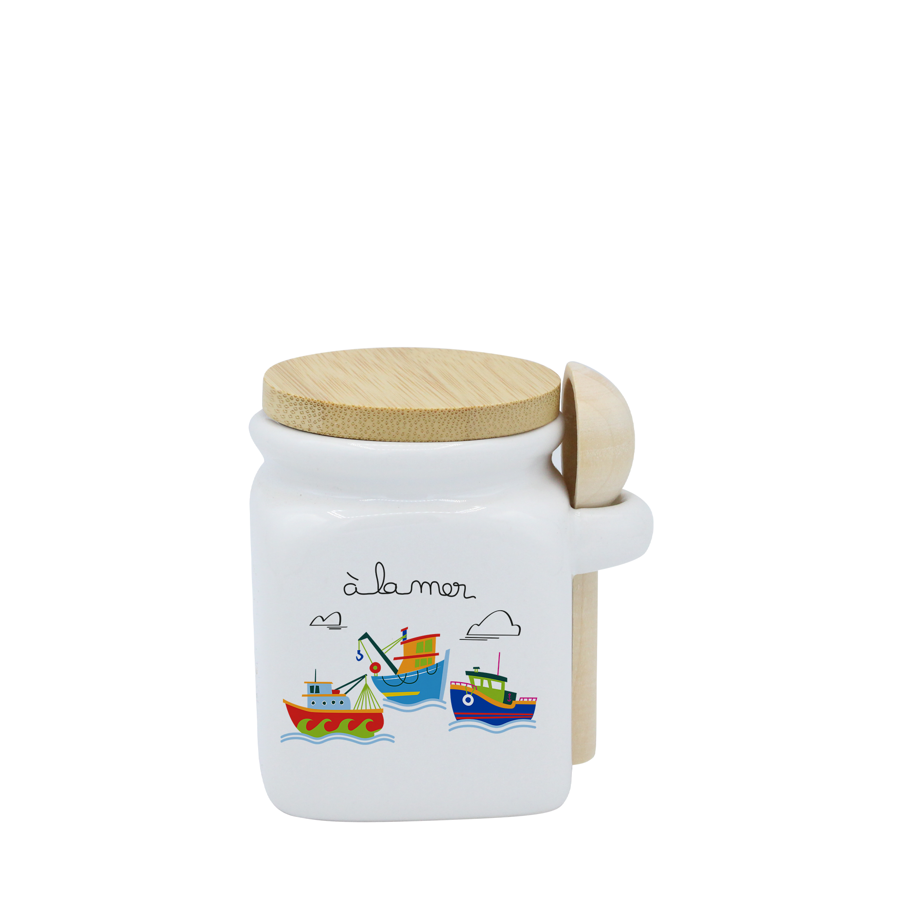 POT BLANC MINI COUV. BAMBOO+CUIL. BOIS-A LA MER BATEAUX