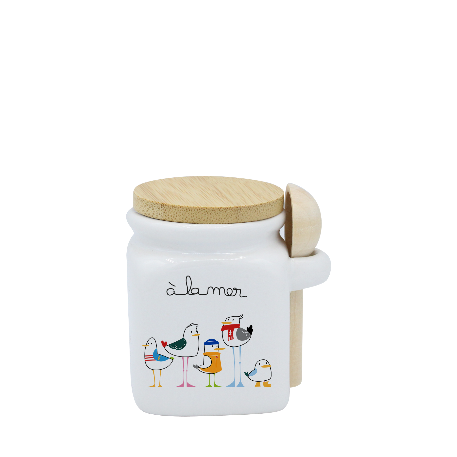 POT BLANC MINI COUV. BAMBOO+CUIL. BOIS-A LA MER MOUETTES