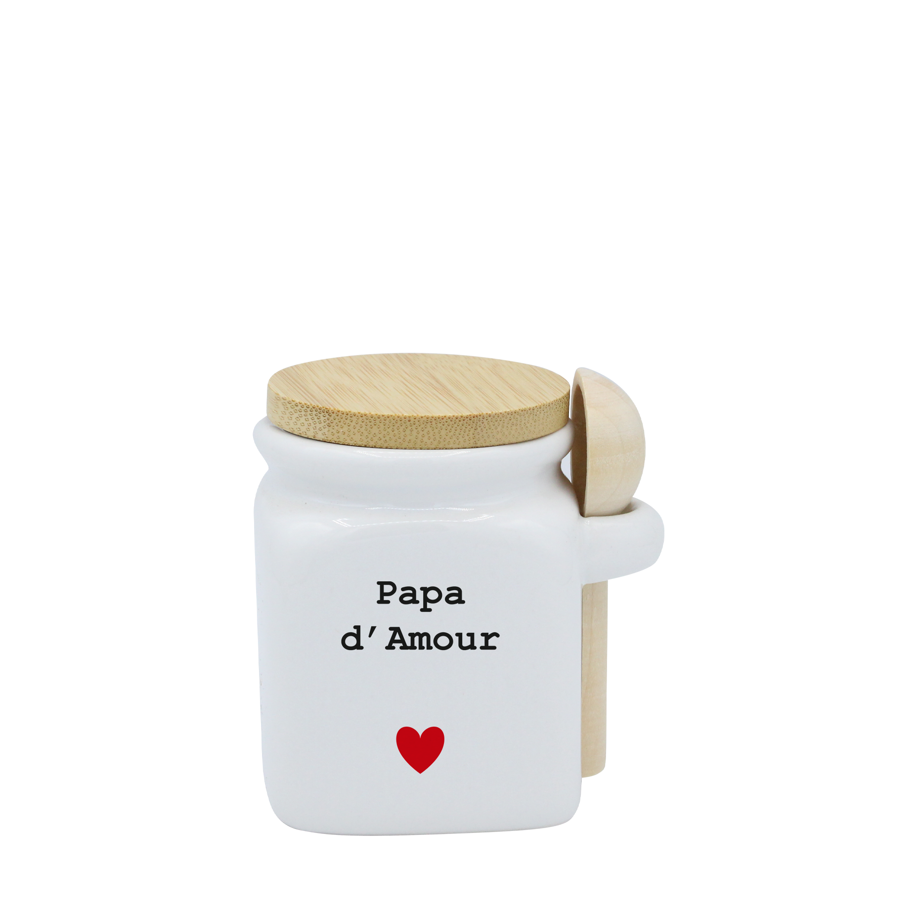 POT BLANC MINI COUV. BAMBOU+CUIL. BOIS - CŒUR PAPA D'AMOUR