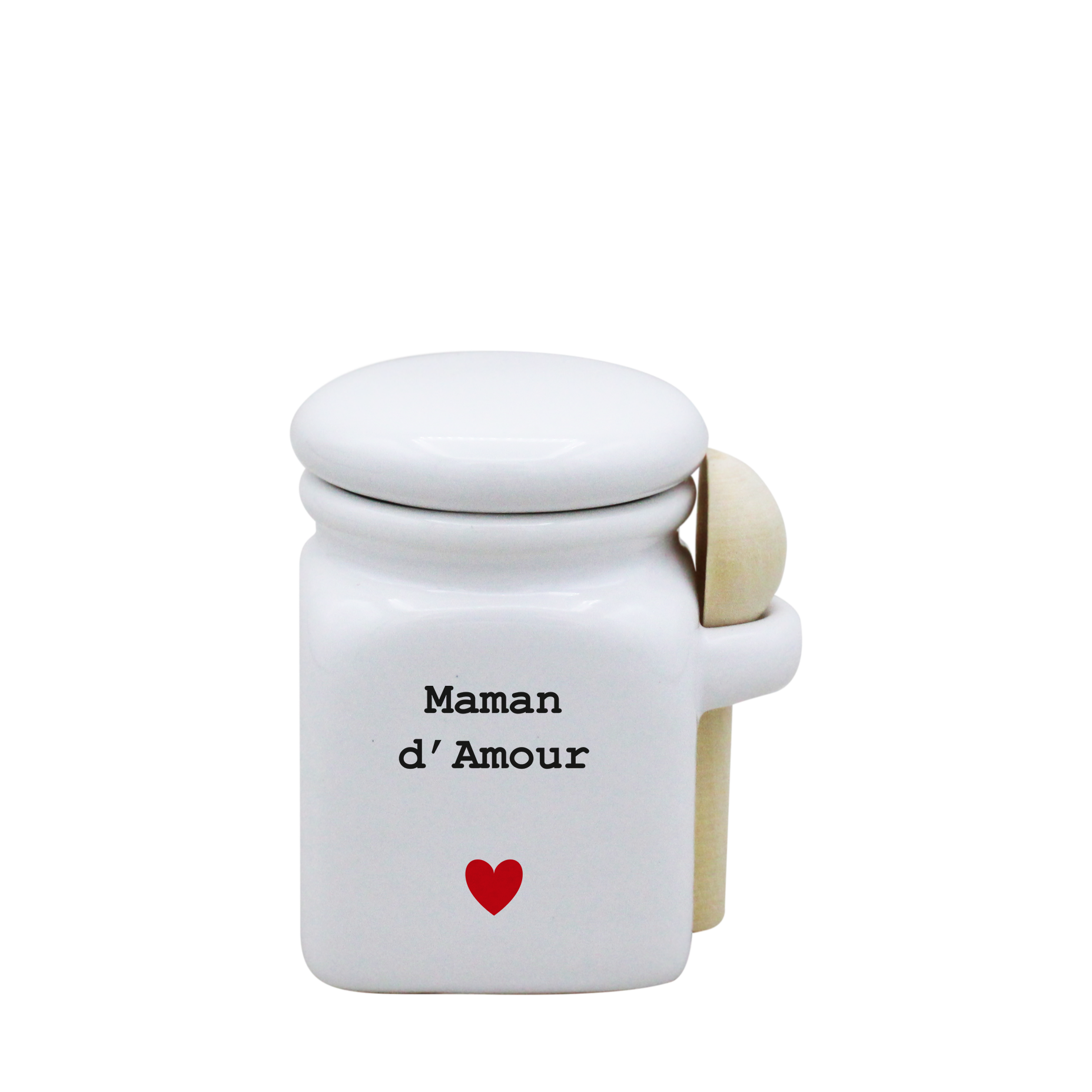 POT BLANC MINI COUV. BLANC+CUIL. BOIS - CŒUR MAMAN D'AMOUR