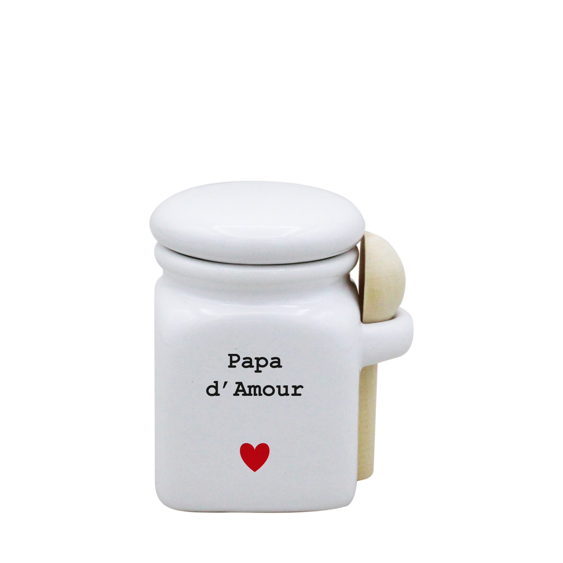 POT BLANC MINI COUV. BLANC+CUIL. BOIS - CŒUR PAPA D'AMOUR