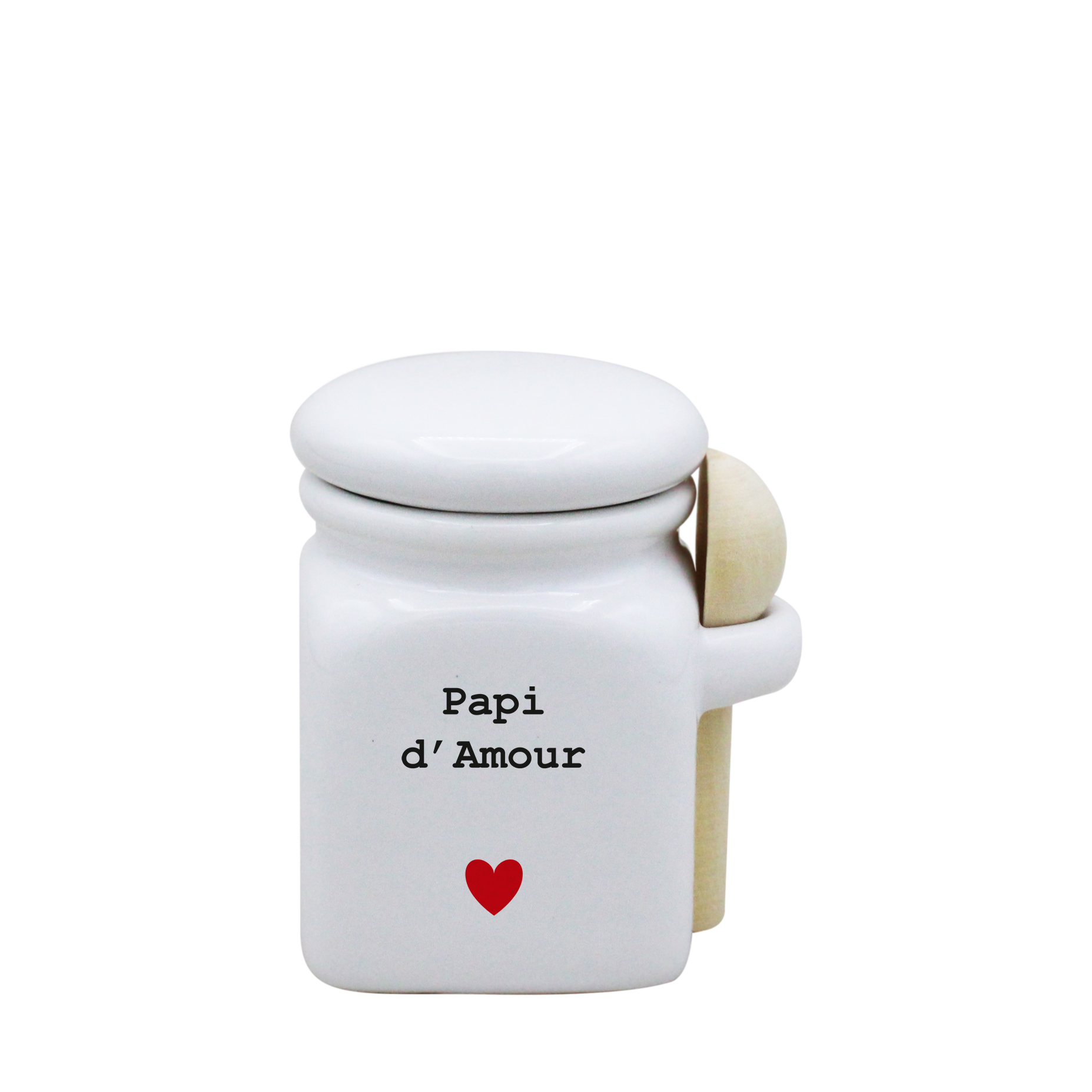 POT BLANC MINI COUV. BLANC+CUIL. BOIS - CŒUR PAPI D'AMOUR