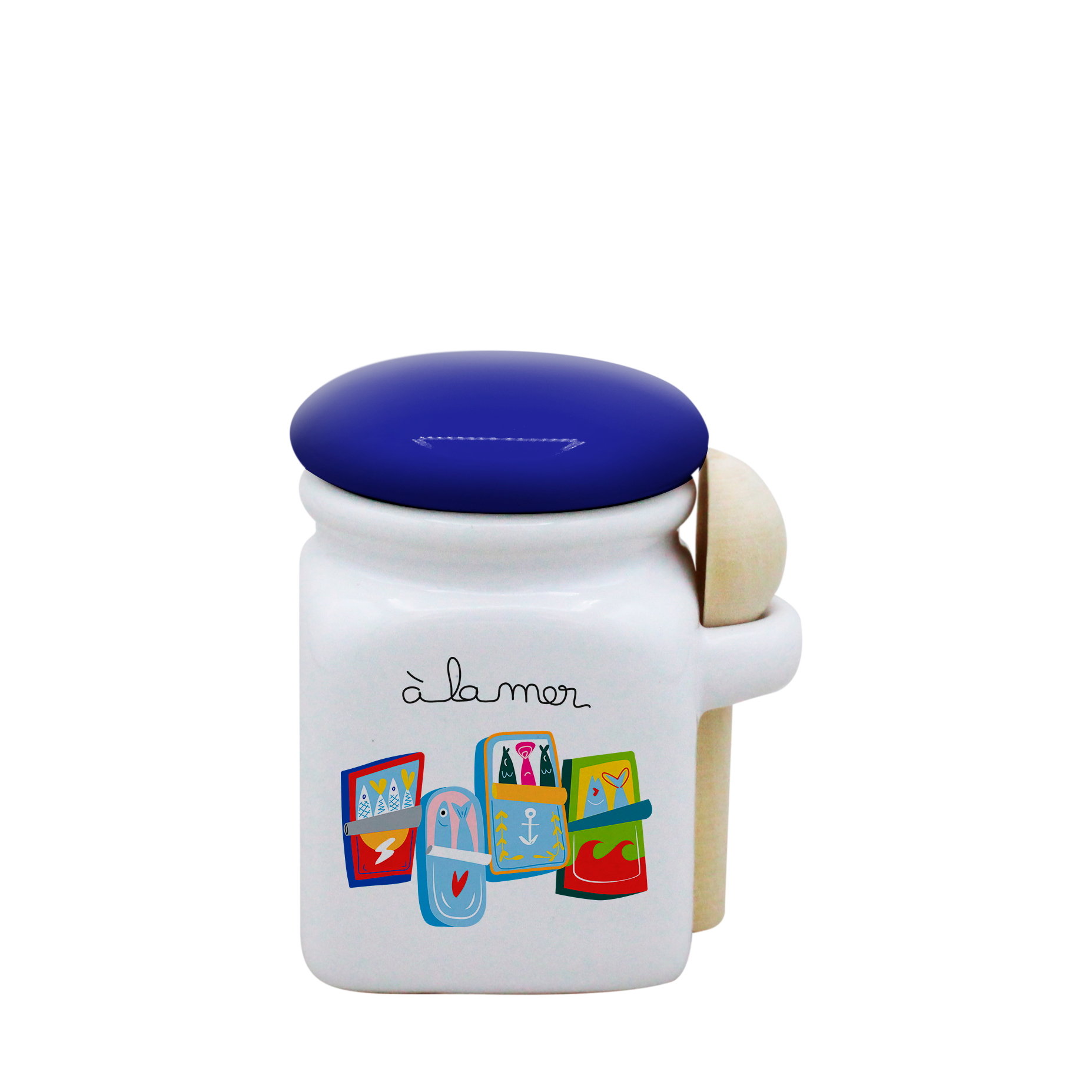 POT BLANC MINI COUV. BLEU+CUIL. BOIS-A LA MER SARDINES