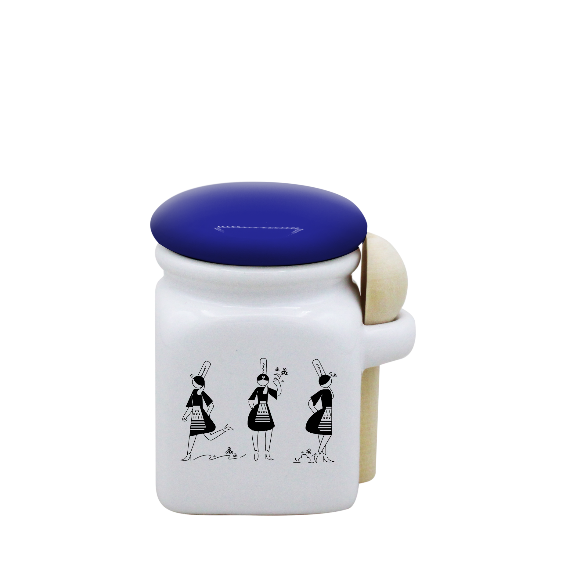 POT BLANC MINI COUV. BLEU+CUIL. BOIS - ARMELLE BIGOUDENE 3 PICTOS
