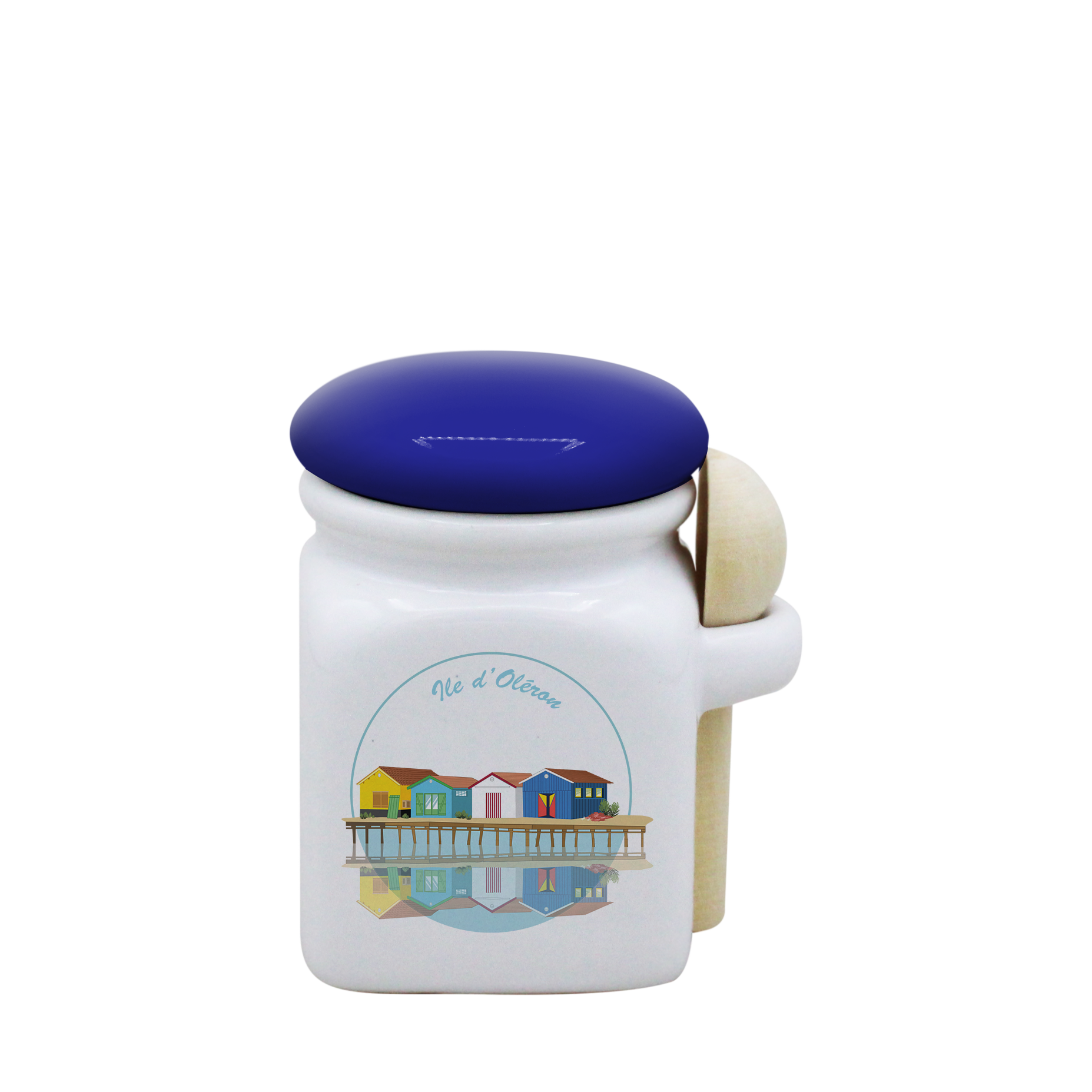 POT BLANC MINI COUV. BLEU+CUIL. BOIS-CABOLERO