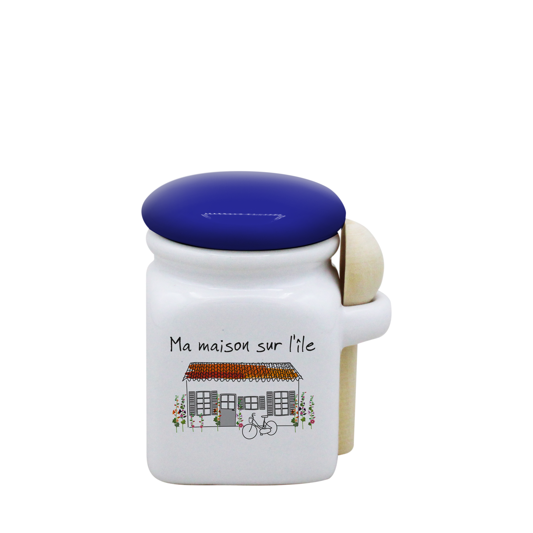 POT BLANC MINI COUV. BLEU+CUIL. BOIS-MMASI