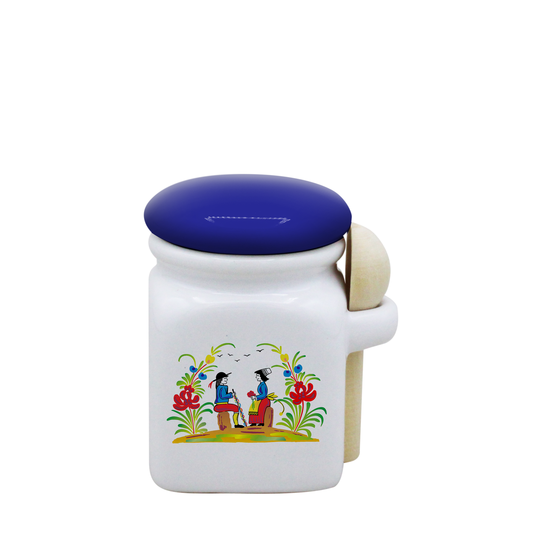 POT BLANC MINI COUV. BLEU+CUIL. BOIS-RETRO