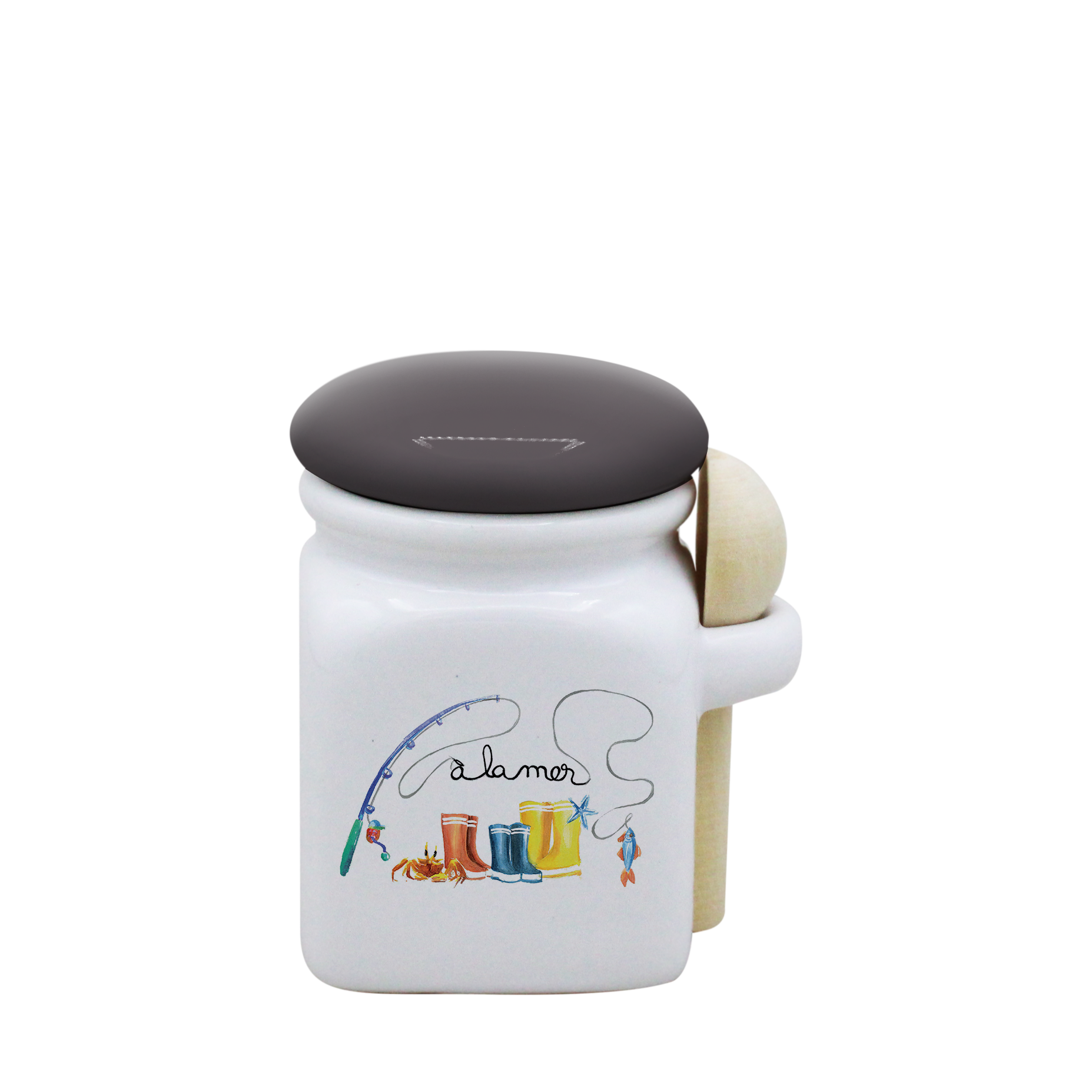 POT BLANC MINI COUV. GRIS+CUIL. BOIS-BOTTE A LA MER