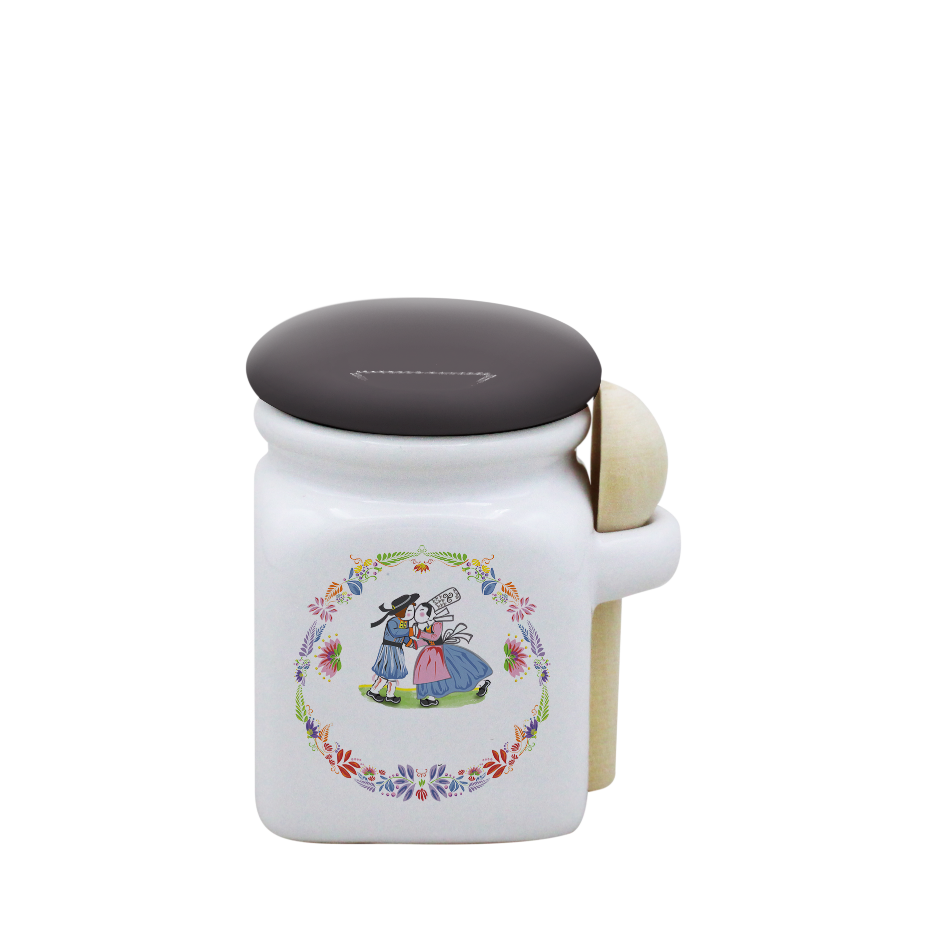 POT BLANC MINI COUV. GRIS+CUIL. BOIS-BTNER