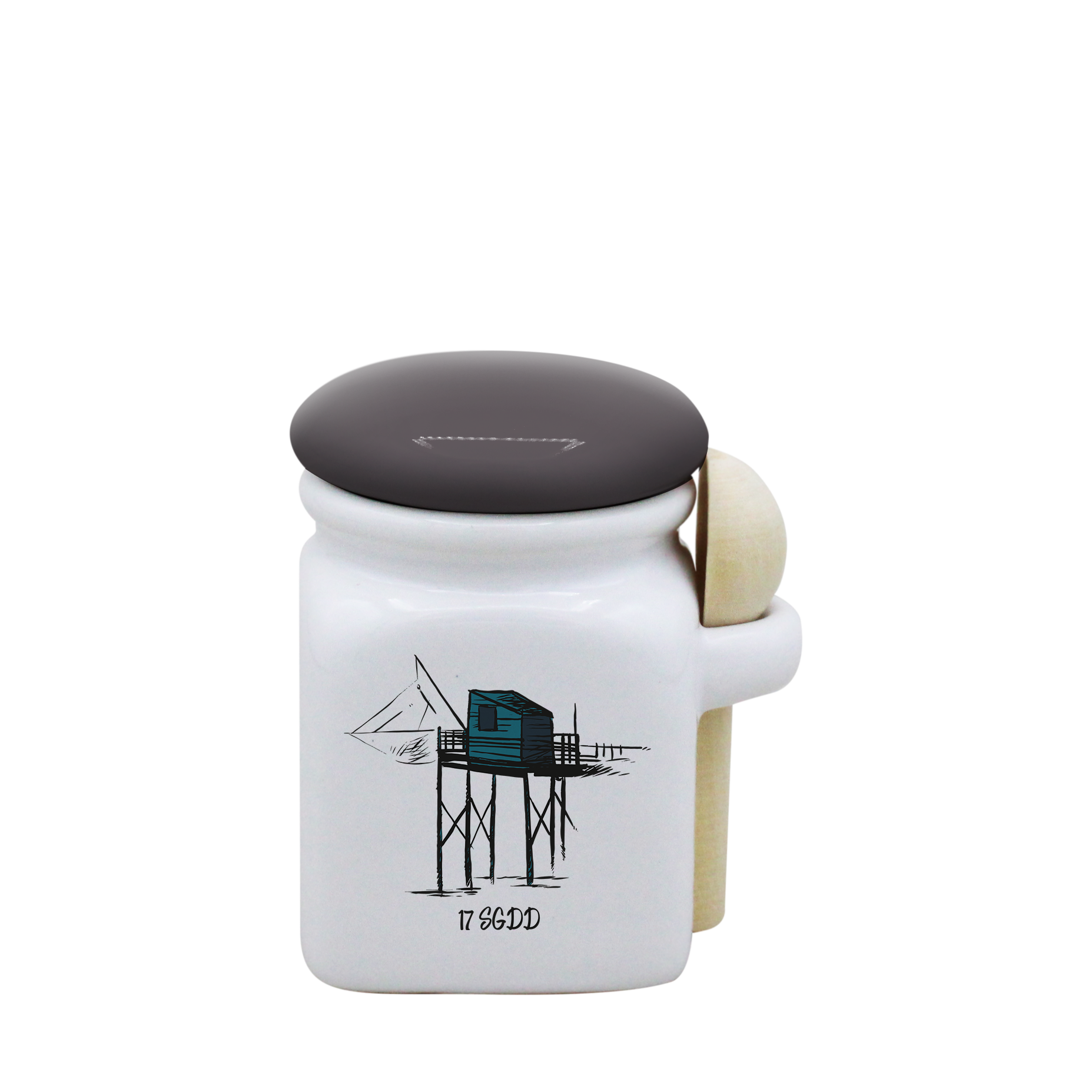 POT BLANC MINI COUV. GRIS+CUIL. BOIS-CARBLE17
