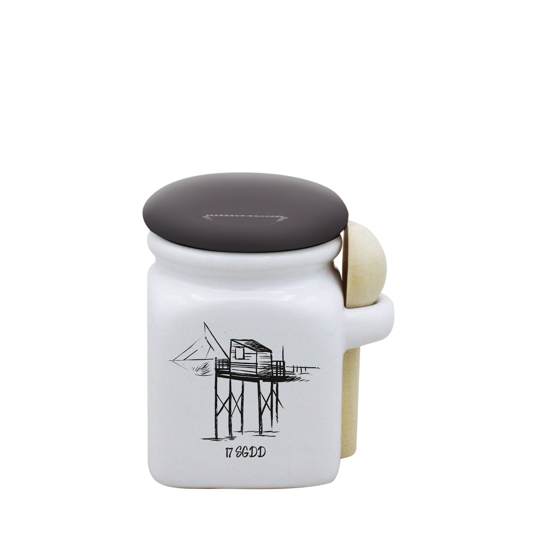 POT BLANC MINI COUV. GRIS+CUIL. BOIS - CARRELET NOIR SPE BO ET BON