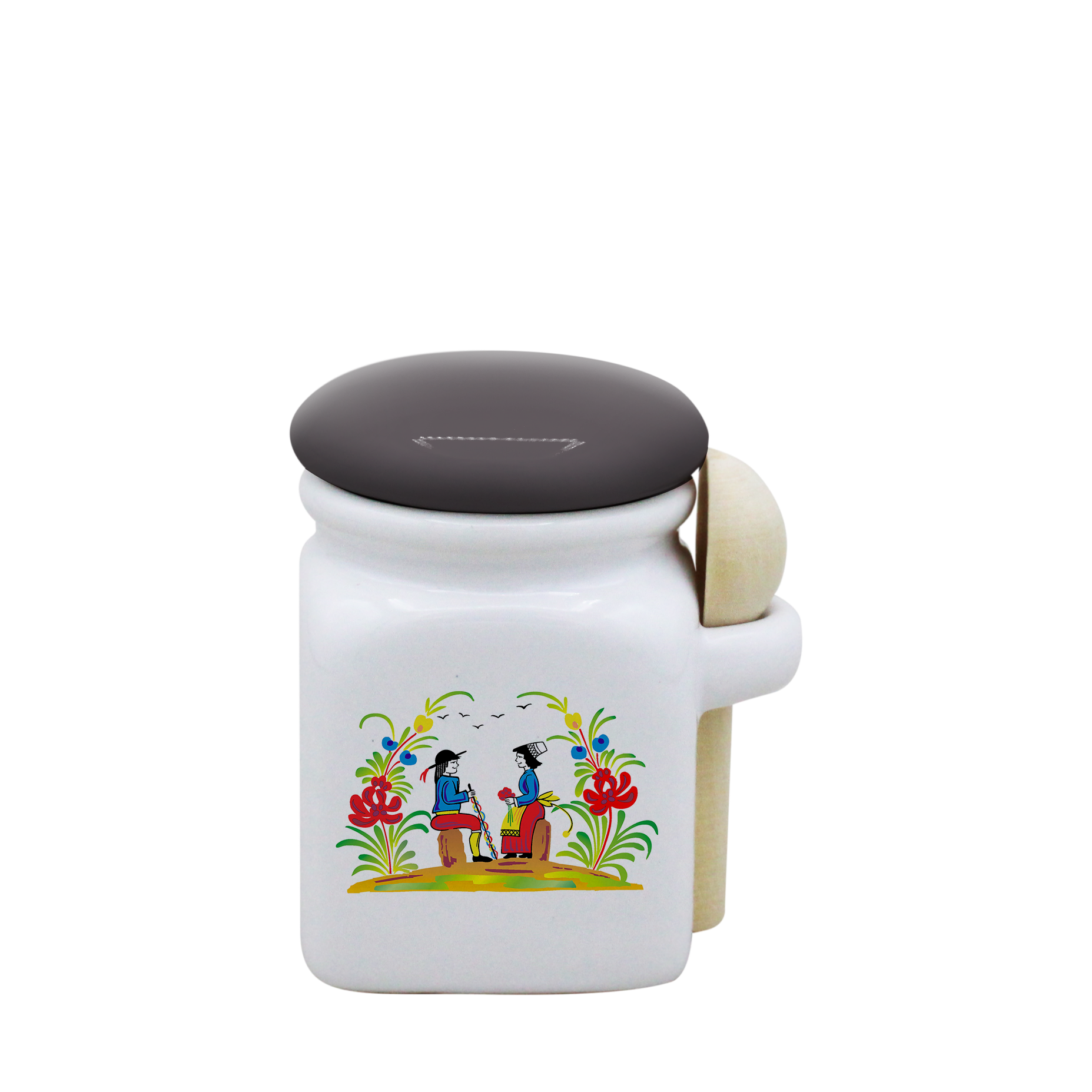 POT BLANC MINI COUV. GRIS+CUIL. BOIS-RETRO