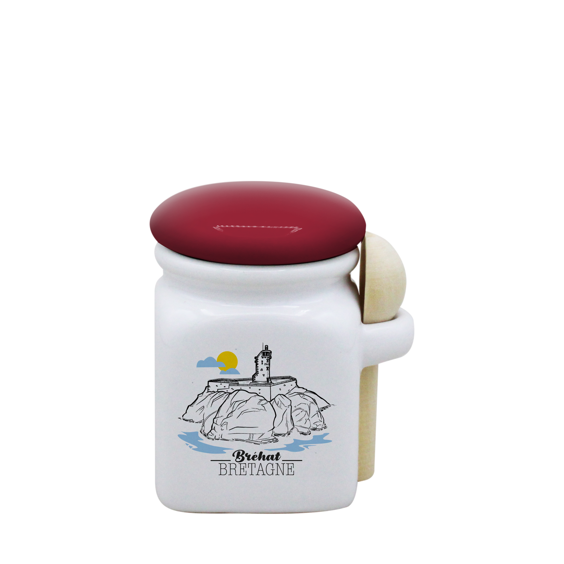 POT BLANC MINI COUV. ROUGE+CUIL. BOIS -BREPAON