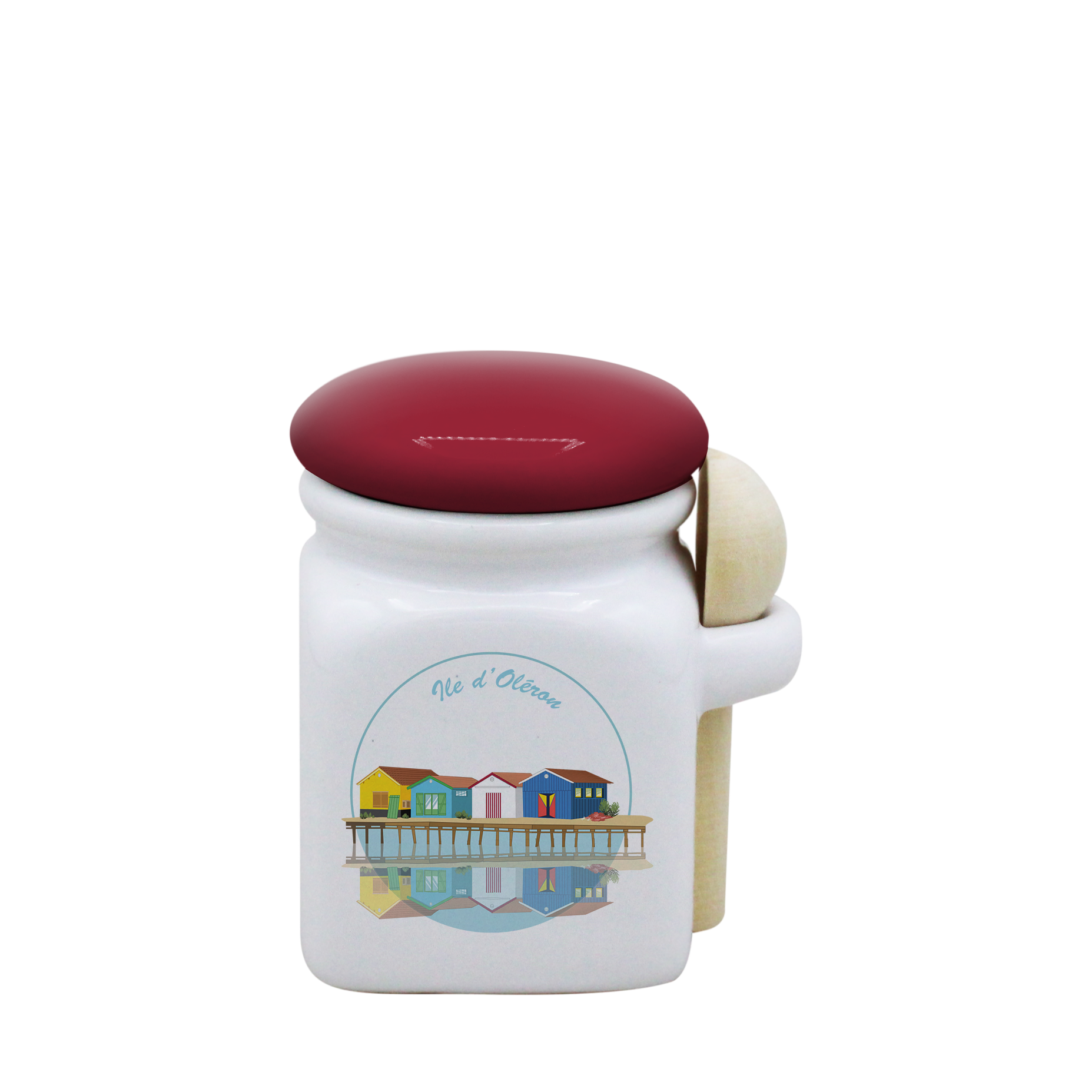 POT BLANC MINI COUV. ROUGE+CUIL. BOIS -CABOLERO