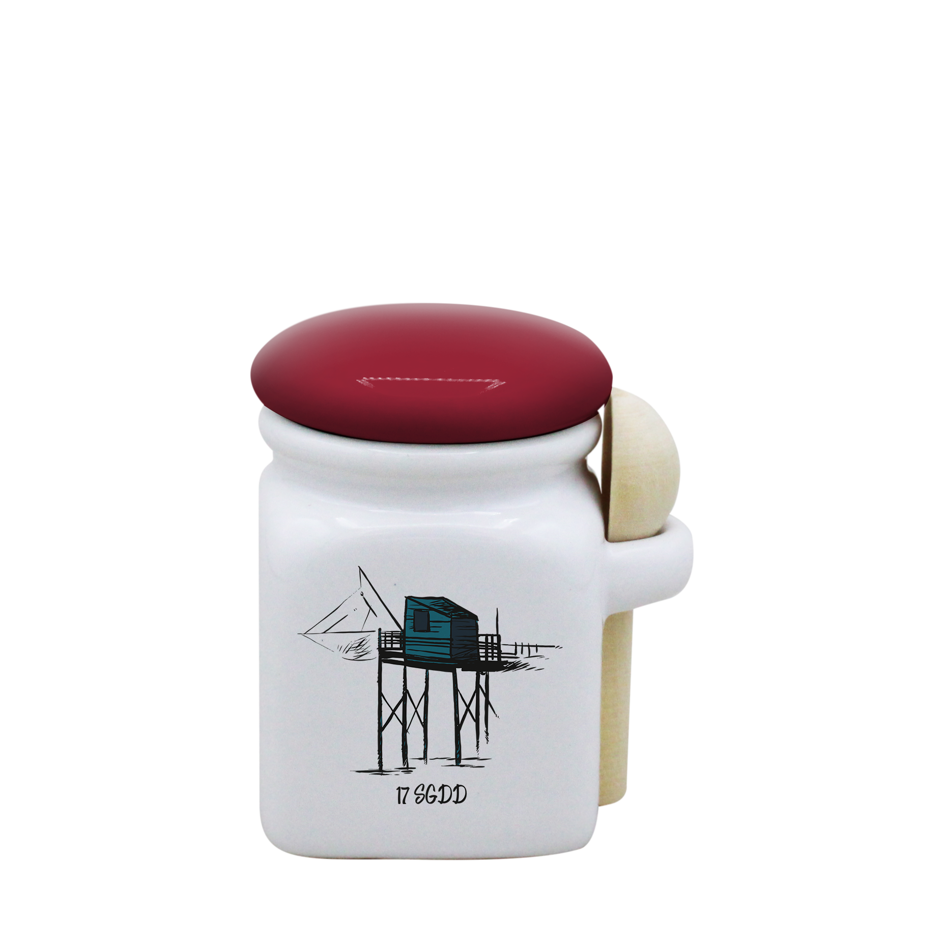 POT BLANC MINI COUV. ROUGE+CUIL. BOIS -CARBLE17
