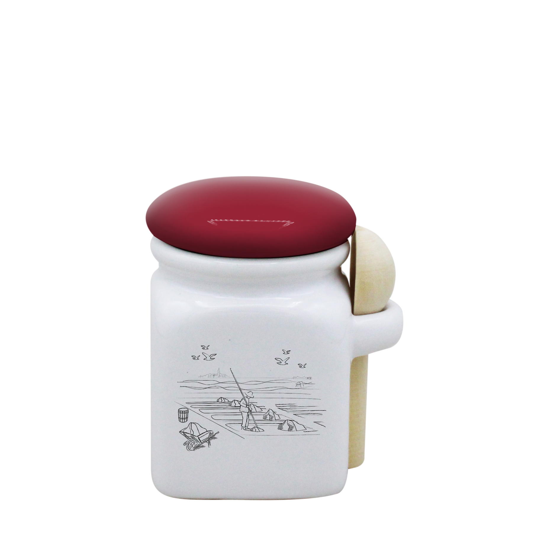 POT BLANC MINI COUV. ROUGE+CUIL. BOIS -MASALB
