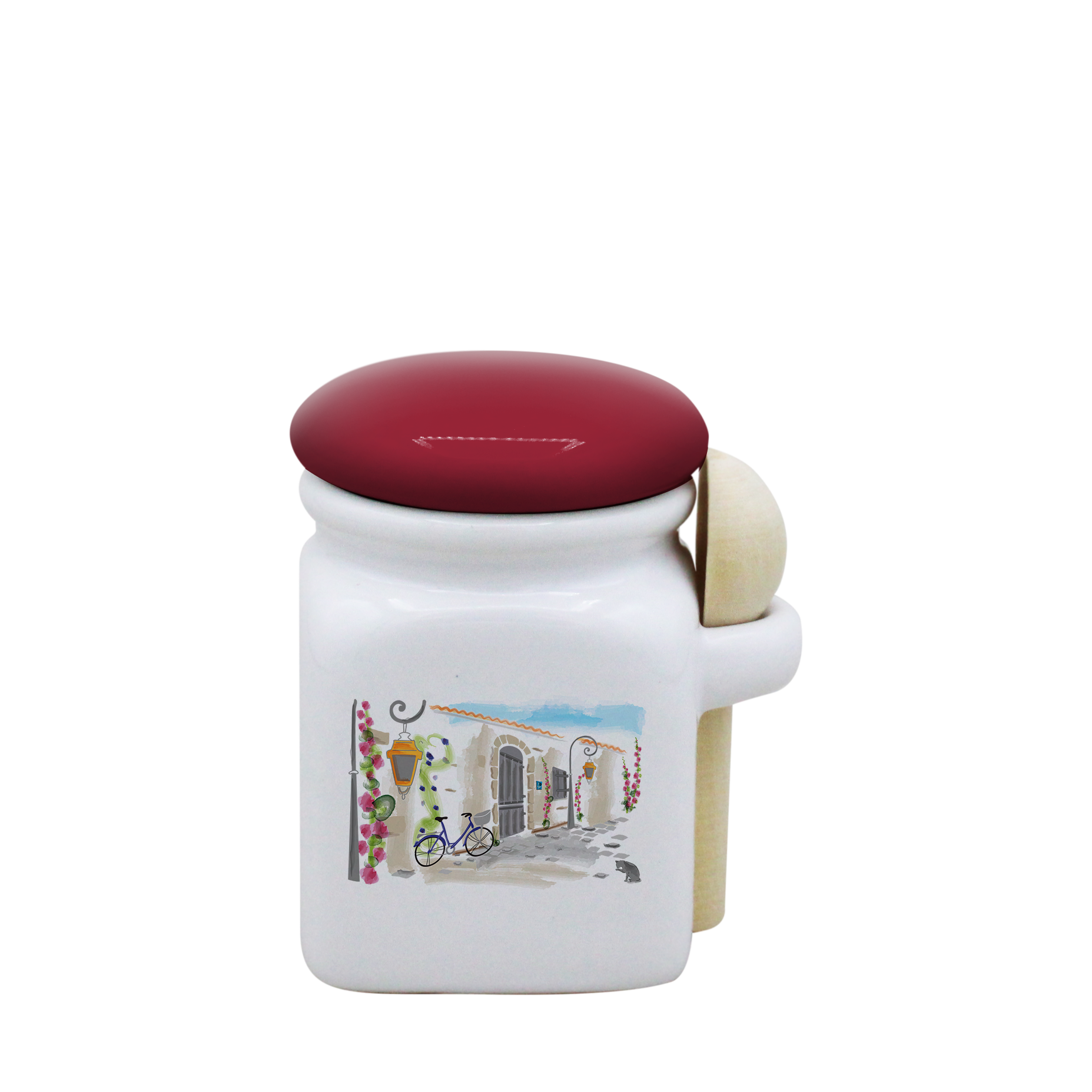 POT BLANC MINI COUV. ROUGE+CUIL. BOIS -RUATL