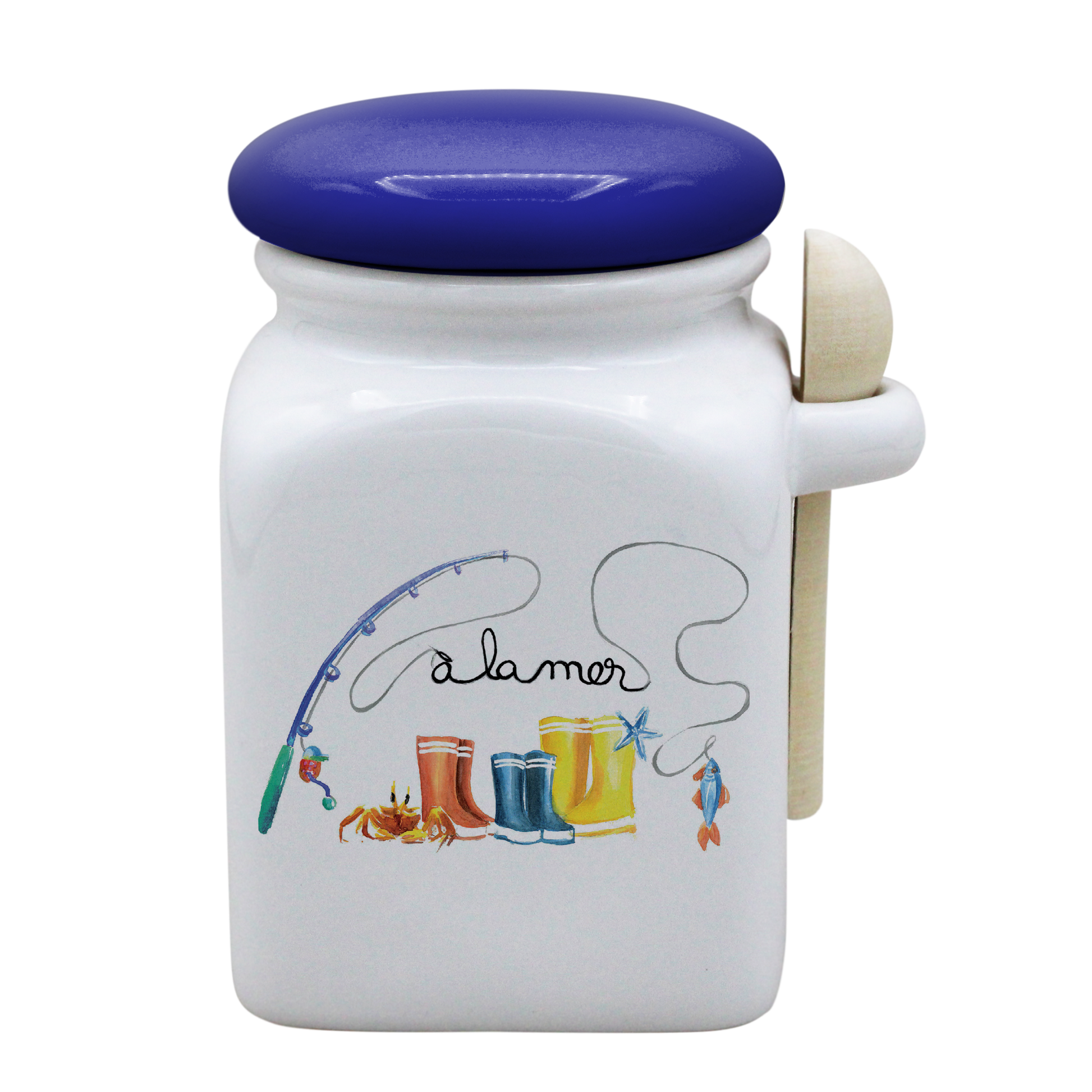 POT BLANC MM COUV. BLEU +CUIL. BOIS-BOTTE A LA MER