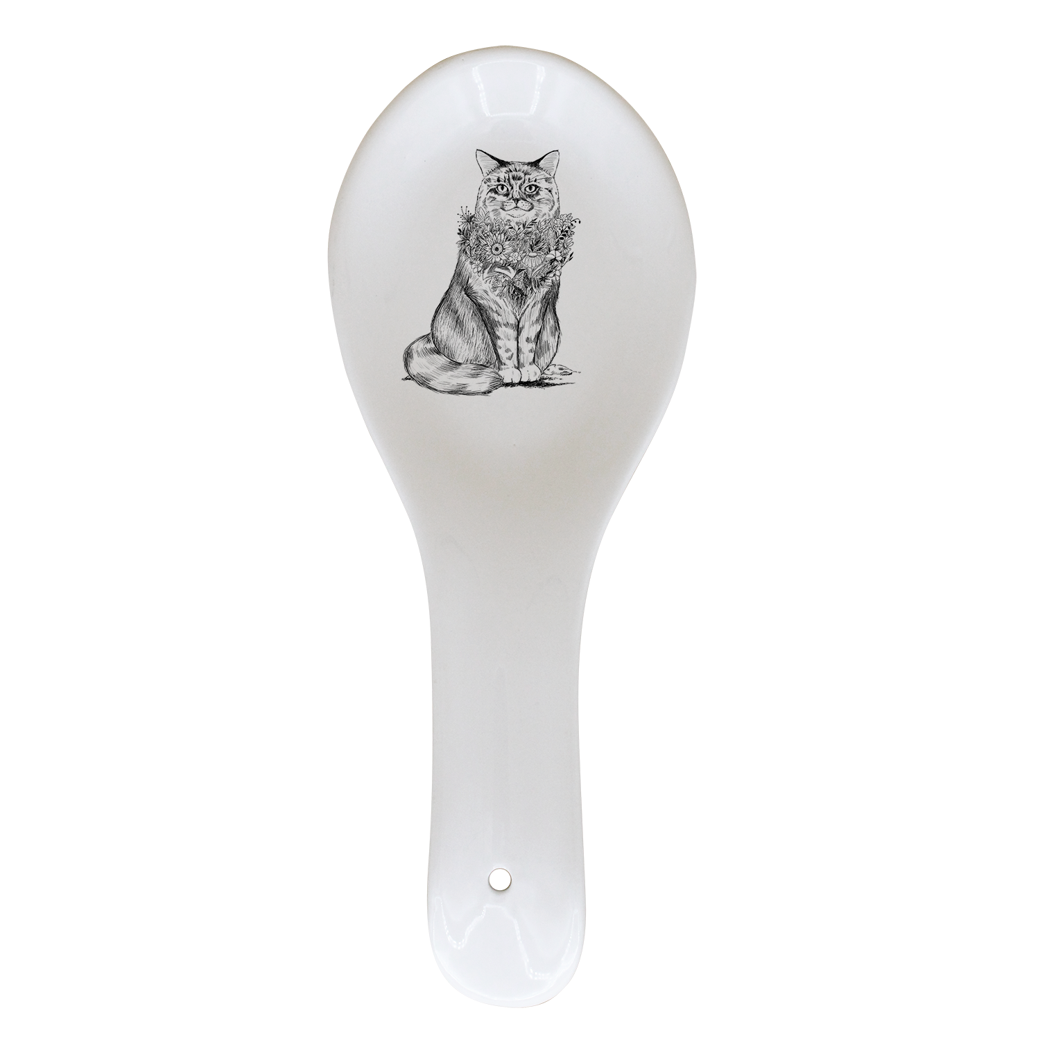 REPOSE CUILLERE BLANC - CHAT DE VILLE NOIR AVEC COLLIER DE FLEURS